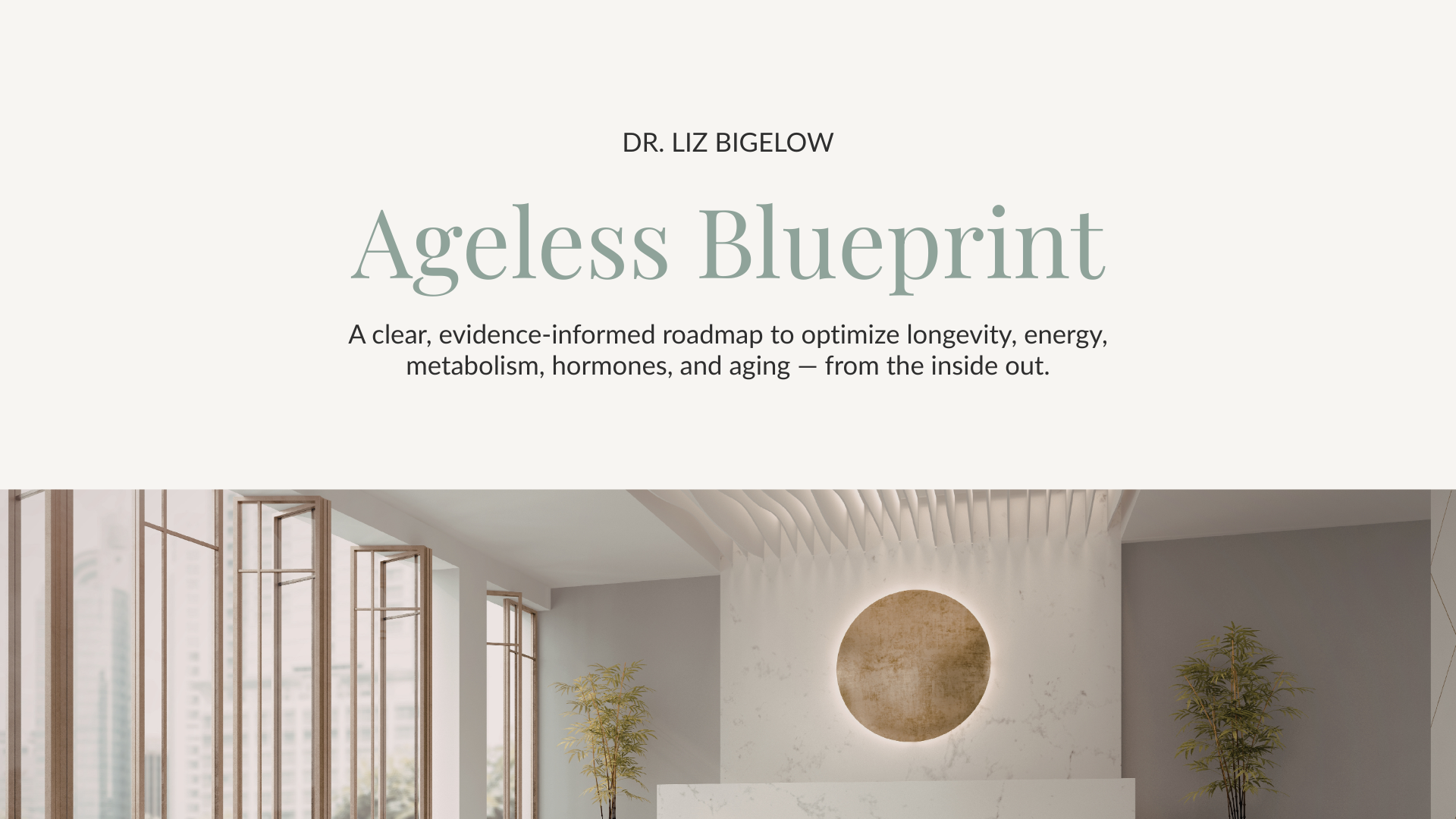 The Ageless Blueprint is Dr. Liz Bigelowâs signature course designed to bring clarity to longevity medicine. Inside, she shares the same structured, evidence-informed frameworks she uses in clinical practice to optimize energy, metabolic health, hormone balance, and long-term performance.